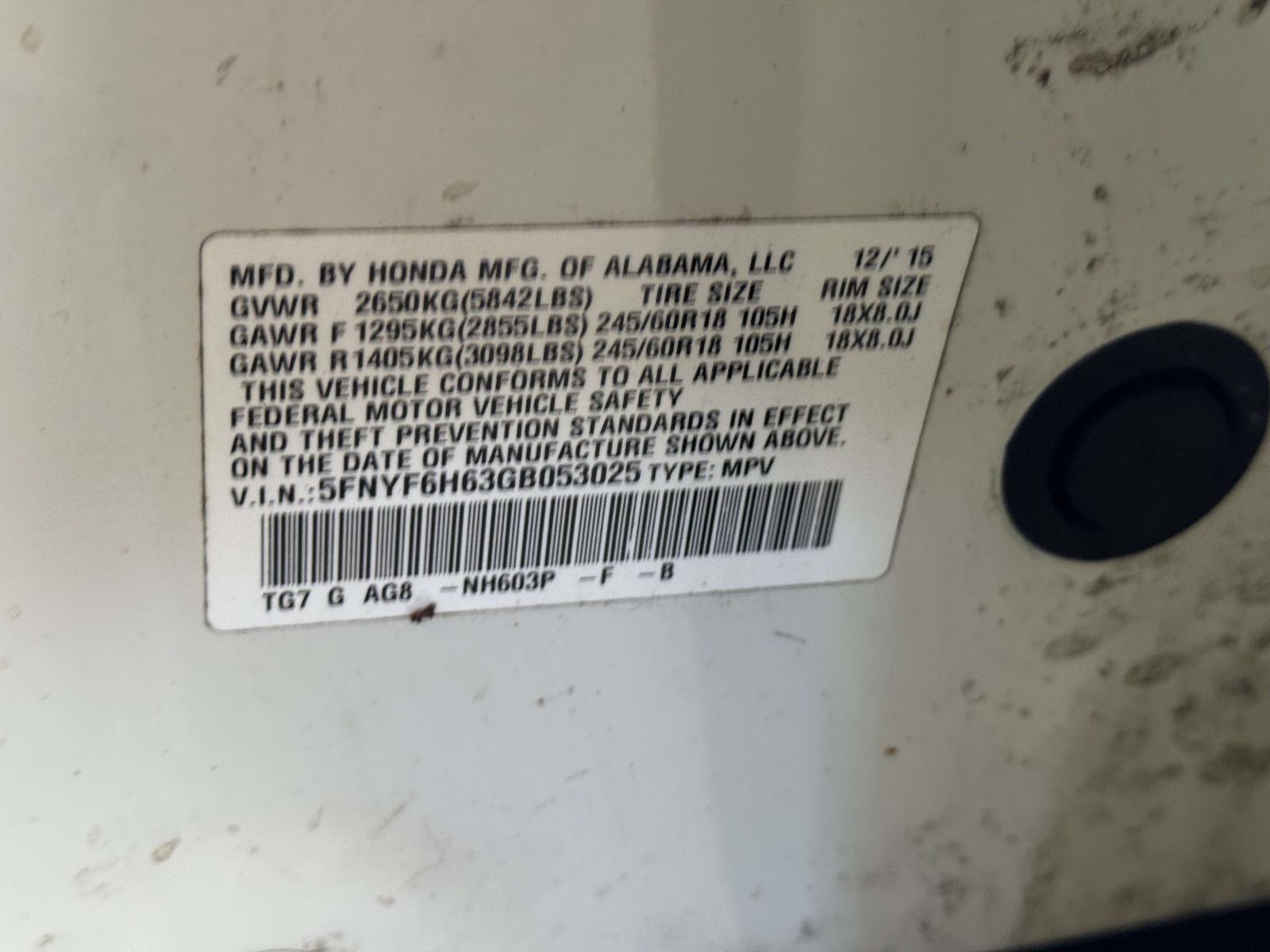 | VIN | 5FNYF6H63GB053025 |