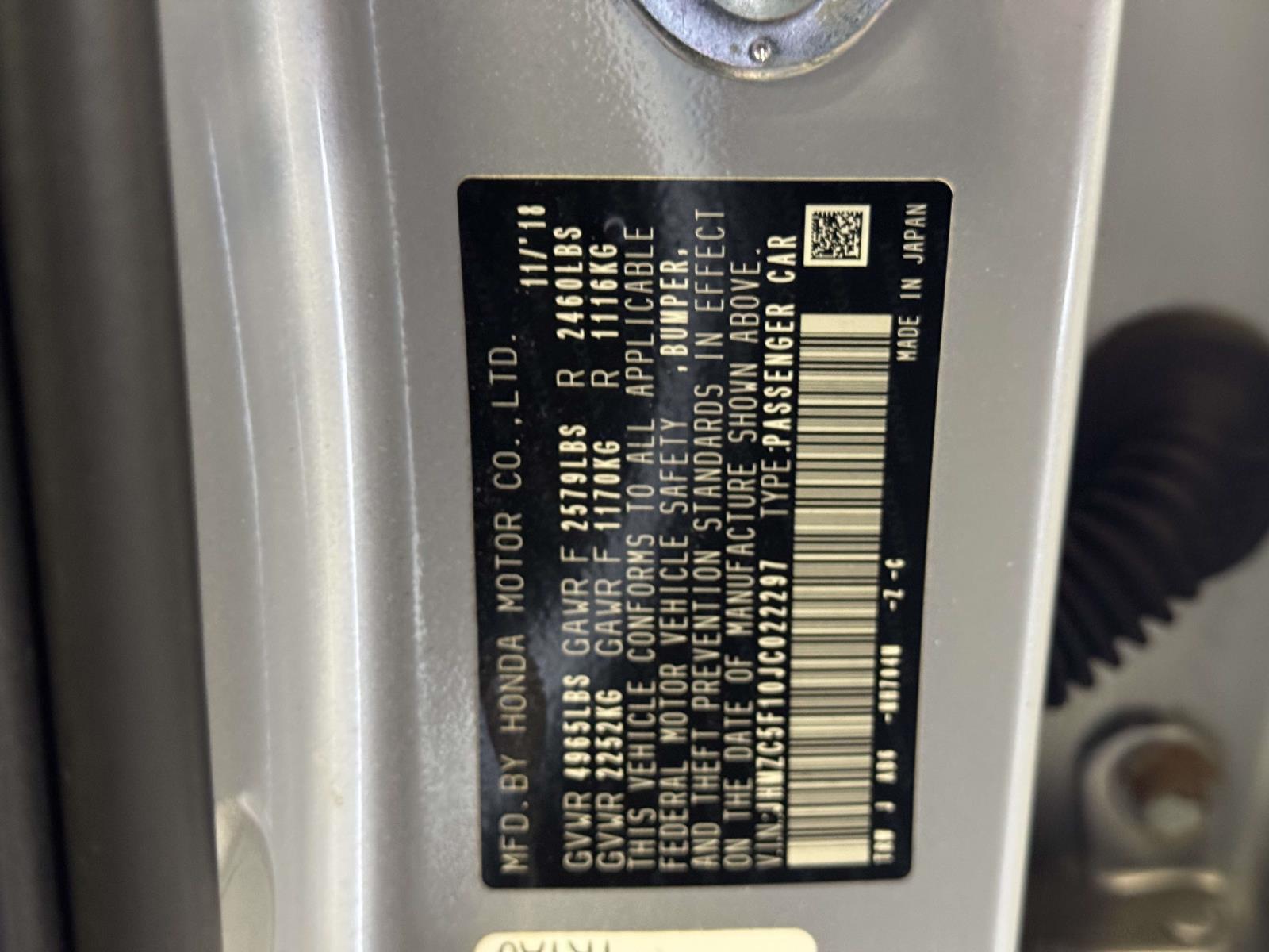 | VIN | JHMZC5F10JC022297 |