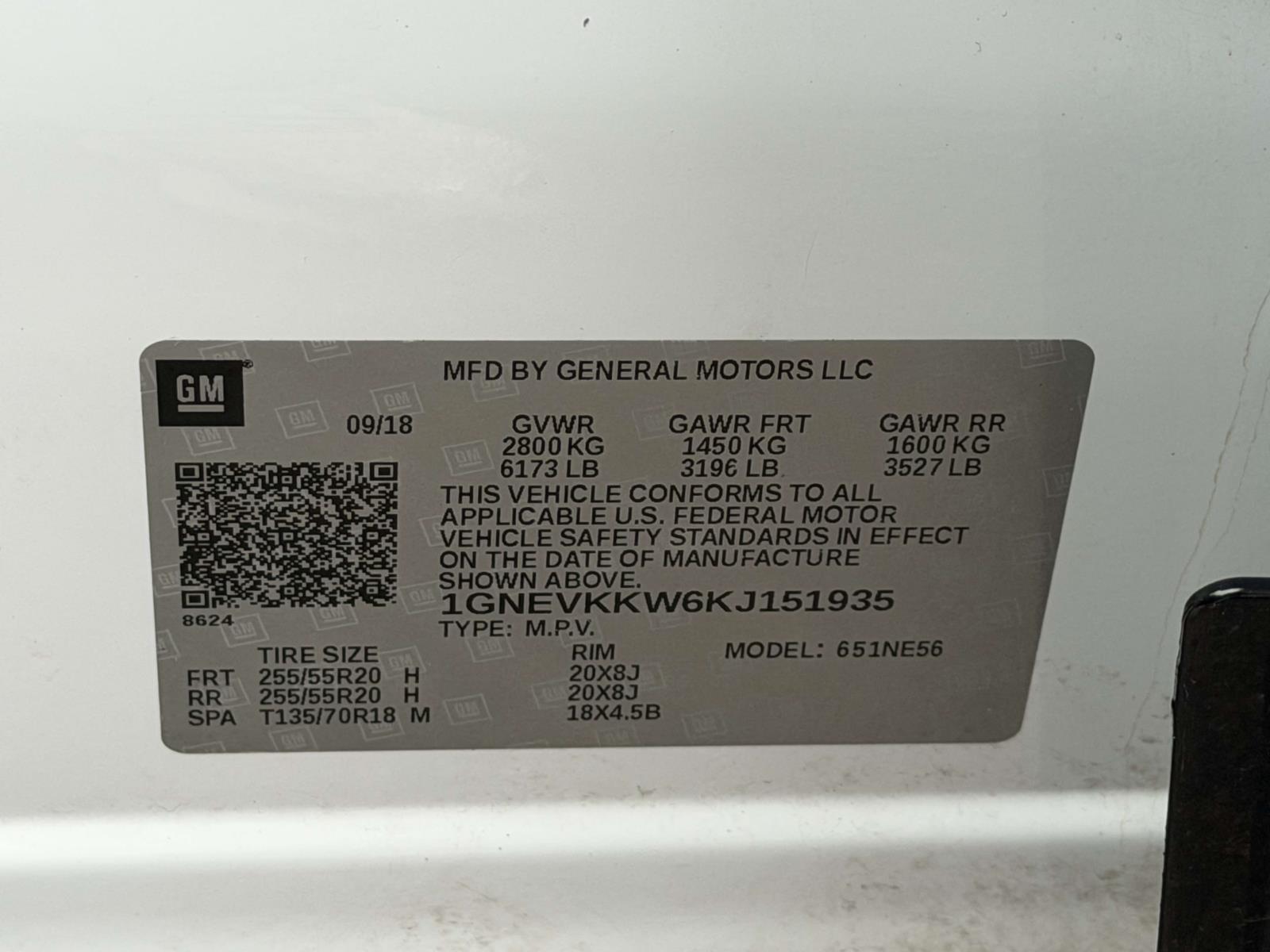 | VIN | 1GNEVKKW6KJ151935 |