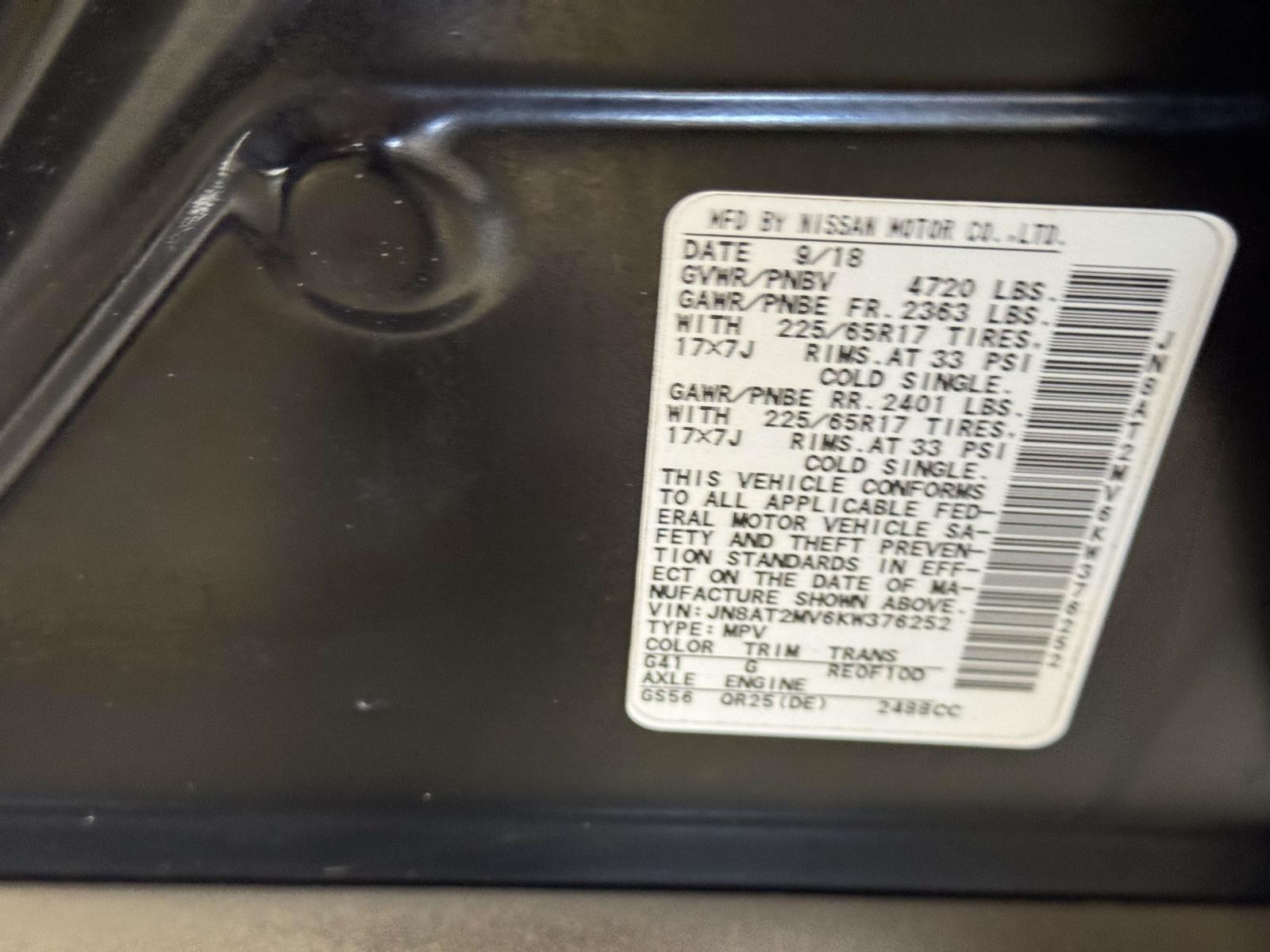 | VIN | JN8AT2MV6KW376252 |